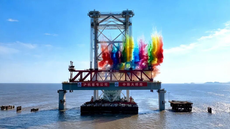 9月27日15時,隨著“天一號”運架一體船與巨力索具預制箱梁吊具將重達2800噸的新一代“世界梁王”在杭州灣海域順利架設,世界最長高速鐵路跨海大橋——杭州灣跨海鐵路大橋全面進入架梁施工新階段,為后續大規模開展海上架梁作業打下了堅實基礎。