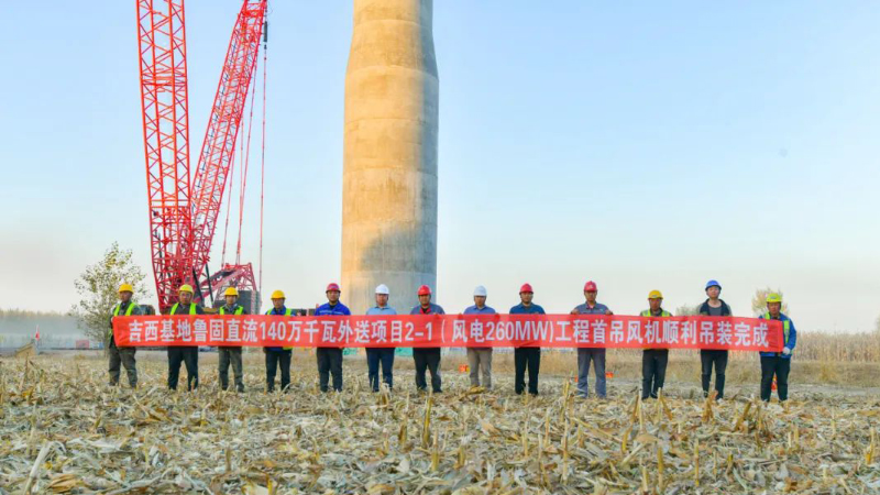 近日,中廣核吉林吉西基地魯固直流140萬千瓦外送項目2-1(風(fēng)電場260MW)工程首吊風(fēng)機完成吊裝。巨力索具60KNM盤車工裝和5MW單葉片吊具全程保障其順利吊裝。