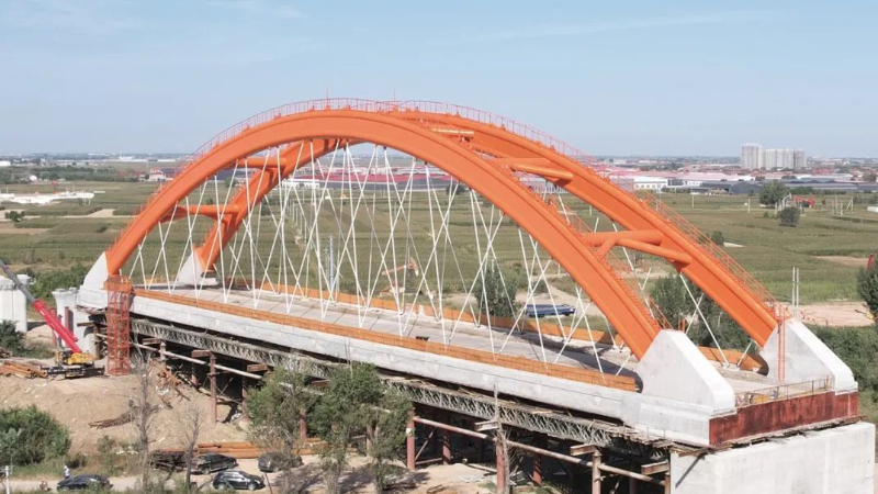 近日,跨捷地堿河特大橋主體鋼構(gòu)順利完工。跨捷地堿河特大橋全長131米,為下承式有砟軌道雙線簡支拱高速鐵路橋,主要承重結(jié)構(gòu)為提籃式鋼管拱肋及尼爾森吊桿體系,拱肋用七百余噸重型鋼結(jié)構(gòu)件及所有吊桿用鋼纜,均由巨力索具股份有限公司制造,安裝。