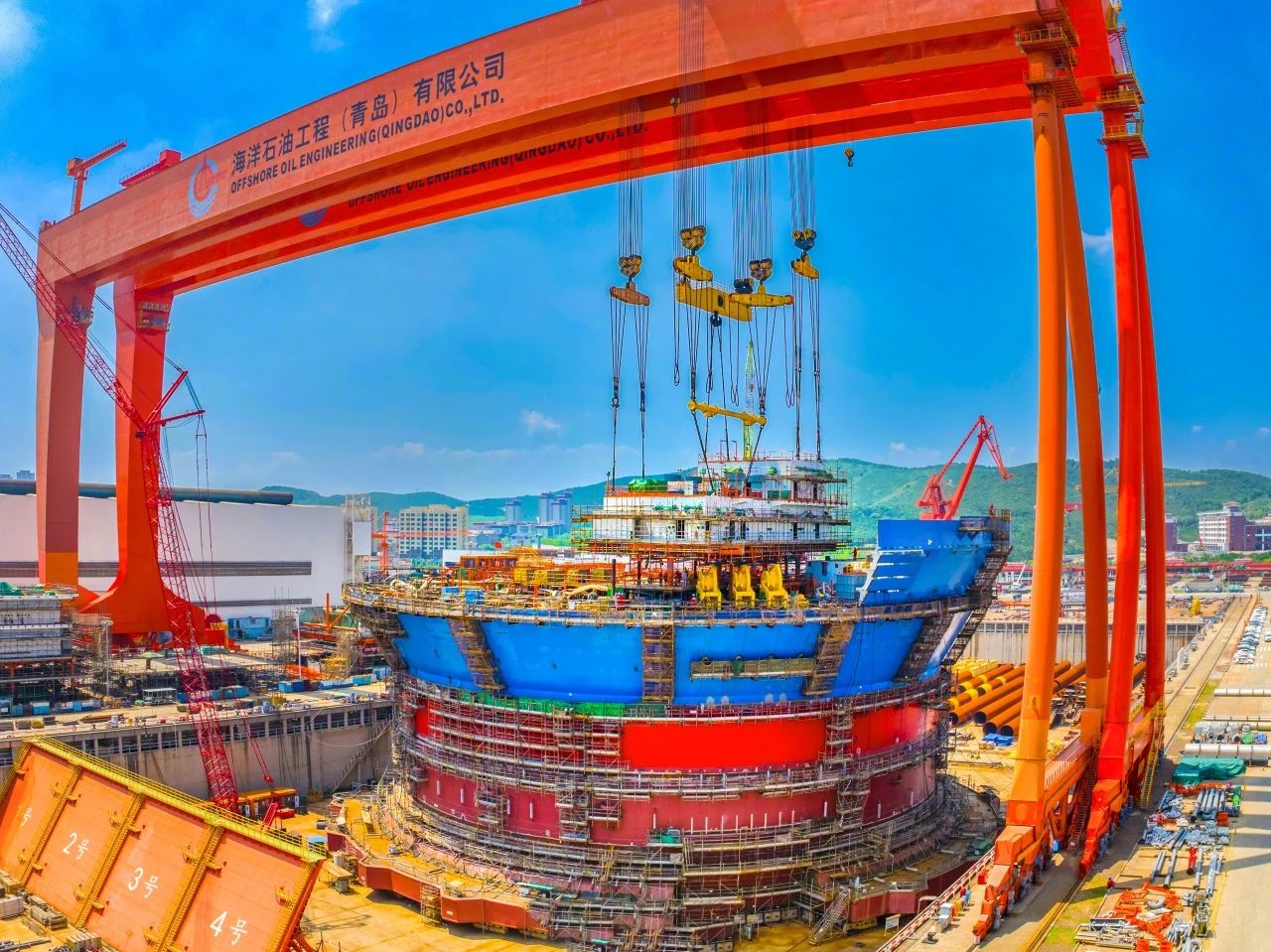 2023年12月,由我國(guó)自主設(shè)計(jì)建造的亞洲首艘圓筒型“海上油氣加工廠(chǎng)”“海洋石油122”浮式生產(chǎn)儲(chǔ)卸油裝置——“海葵一號(hào)”超級(jí)能源碗在青島完成主體建造,巨力索具提供800噸吊梁、400噸、500噸吊排及配套索具組成成套吊裝系統(tǒng),全程配合吊裝順利進(jìn)行。