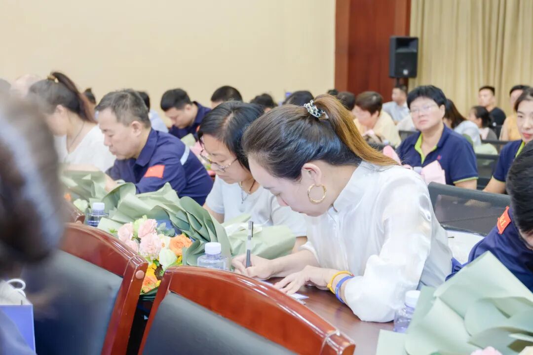 活動的尾聲,《為你祈禱》的旋律在全場響起。真摯的歌聲匯聚成溫暖的海洋,這不僅是孩子們對未來的描繪,更是父母們無聲的期盼與祝福在回響。 當熟悉的旋律流淌,父母們緊握的雙手、專注的目光,無不在訴說著對孩子前程最深切的守望。 這一刻,愛與責任、夢想與傳承、父母的心愿與企業的關懷,都在這飽含深情的合唱中交融共鳴,共同祈愿孩子們擁有璀璨的明天。