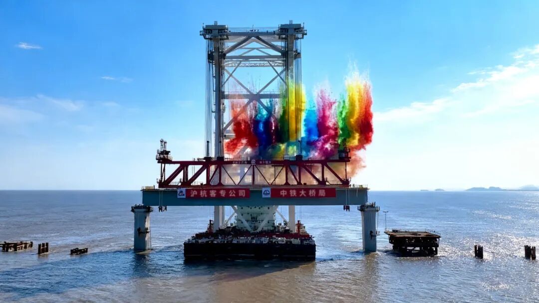 杭州灣跨海鐵路大橋全長約29.2公里,設(shè)計(jì)時(shí)速350公里,是新建南通至寧波高速鐵路的控制性工程。建成后,將成為我國“八縱八橫”高鐵網(wǎng)沿海通道的重要組成部分,對(duì)完善區(qū)域路網(wǎng)結(jié)構(gòu)布局,方便沿線人民群眾出行,推進(jìn)長三角一體化高質(zhì)量發(fā)展具有不可估量的意義。目前,大橋建設(shè)正按計(jì)劃穩(wěn)步推進(jìn),預(yù)計(jì)2026年底將完成海中引橋主體工程,2027年底建成通車。
