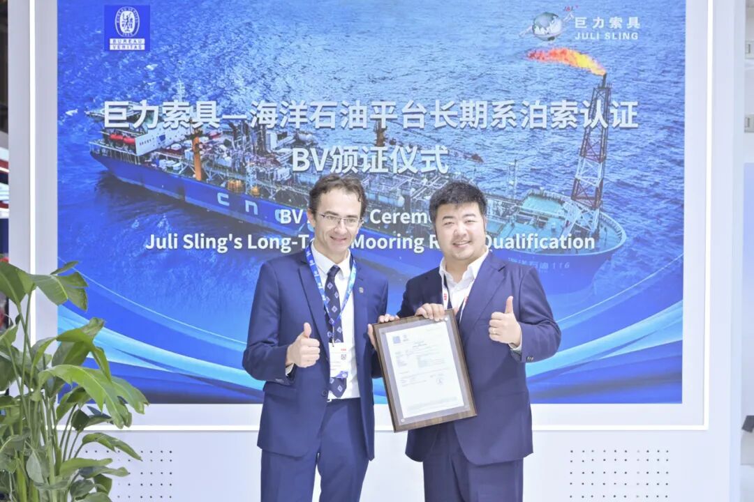 巨力索具常務(wù)副總裁李彥英表示:“這項(xiàng)認(rèn)證是針對(duì)海洋石油平臺(tái)長(zhǎng)期系泊索這一技術(shù)門檻領(lǐng)域的專項(xiàng)認(rèn)證,是對(duì)我們深耕深海裝備技術(shù)的最佳注腳。海洋石油平臺(tái)長(zhǎng)期系泊索不僅要滿足高強(qiáng)度要求,更要在抗疲勞、耐腐蝕和長(zhǎng)期可靠性方面表現(xiàn)卓越。BV的認(rèn)可,證明我們的產(chǎn)品完全符合國(guó)際最高安全標(biāo)準(zhǔn)。”