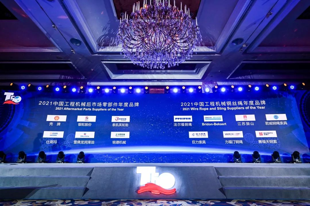 2021年11月22日,以“定義產業,定義未來”為主題的2021全球工程機械50強峰會暨中國設備租賃峰會在上海成功舉辦,來自中國、美國、日本、德國等多個國家,眾多世界一流工程機械制造商及行業龍頭企業匯聚一堂,全球尖端科技成果集中亮相。會上,巨力索具從激烈的競爭中脫穎而出,一舉攬獲“2021中國工程機械配套產業影響力人物” “2021中國工程機械零部件供應商100強”和“鋼絲繩年度品牌”三項大獎,證明了行業和市場對于巨力索具綜合實力和技術創新能力的高度認可。