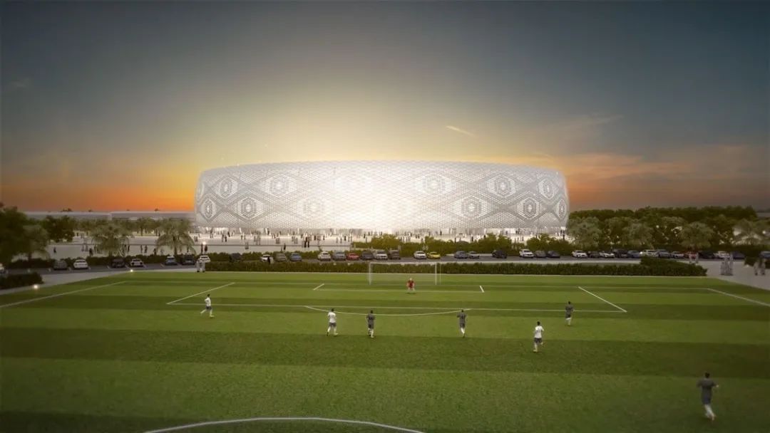 該球場是由卡塔爾建筑師Ibrahim M. Jaidah設計的,其設計靈感源自于阿拉伯男子佩戴的白色針織帽(Gahfiya),獨特的鏤空編織圖案極具阿拉伯特色,將阿拉伯當?shù)仫L情展現(xiàn)得淋漓盡致。