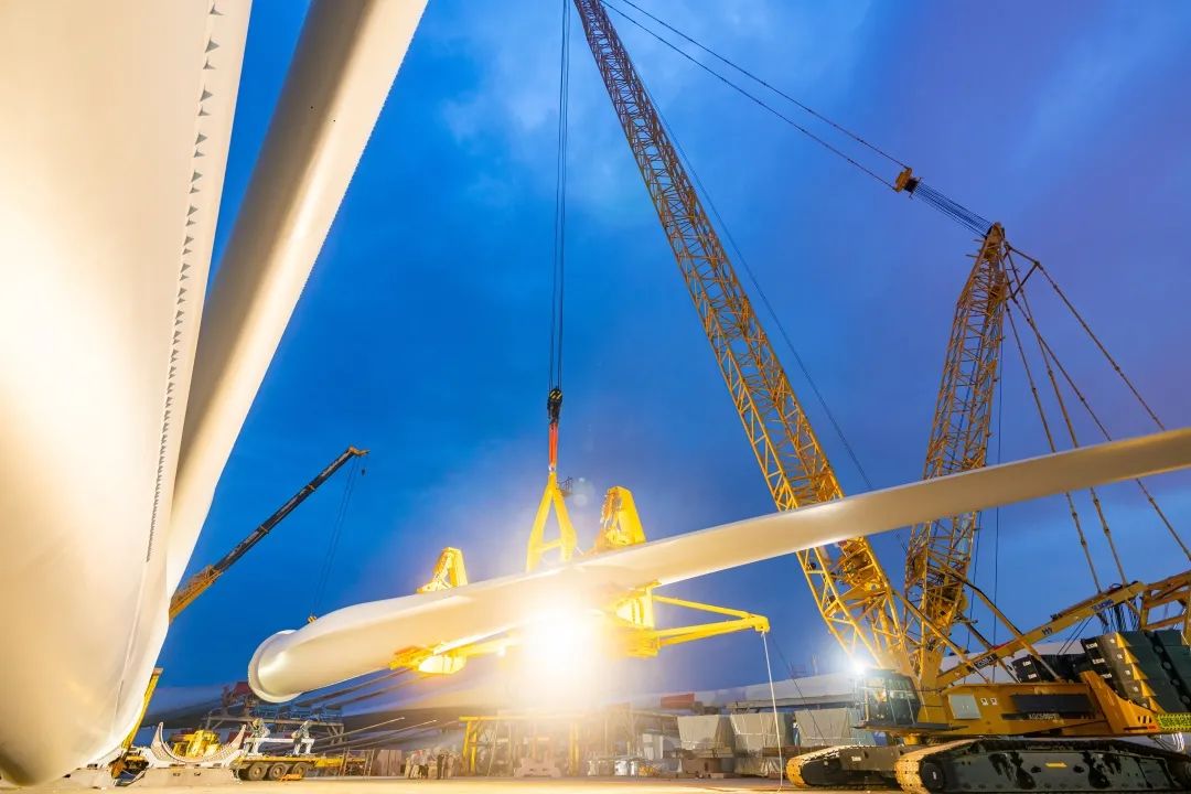 大兆瓦全角度海上單葉片吊具可滿足單只葉片最大承重50噸。同時,將原有的吊裝窗口平均風速提升至15m/s,最大陣風風速可達18m/s,極大拓寬了風機吊裝窗口期,突破了海上吊裝作業風速邊界限制,是又一款海上風電單葉片吊裝“利器”。