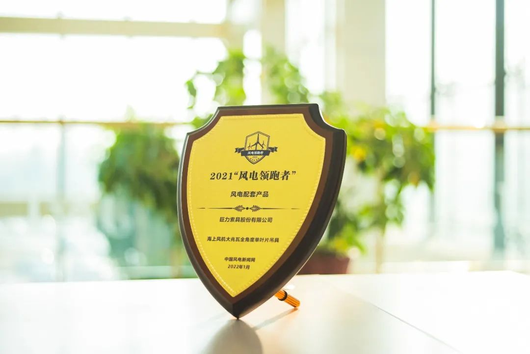 2022年1月8日,由中國(guó)風(fēng)電新聞網(wǎng)主辦的2021(首屆)“風(fēng)電領(lǐng)跑者”技術(shù)創(chuàng)新論壇暨頒獎(jiǎng)盛典在北京成功舉行。巨力索具憑借“國(guó)內(nèi)首臺(tái)50噸大兆瓦全角度海上單葉片吊具”榮獲2021年度“風(fēng)電領(lǐng)跑者”最佳服務(wù)產(chǎn)品榮譽(yù)稱號(hào)。