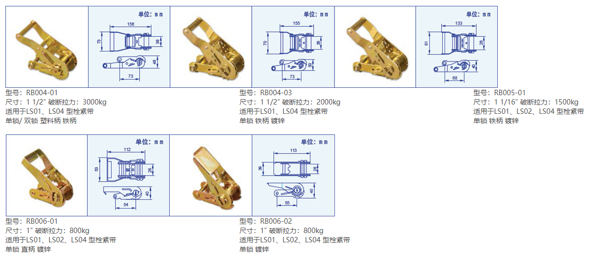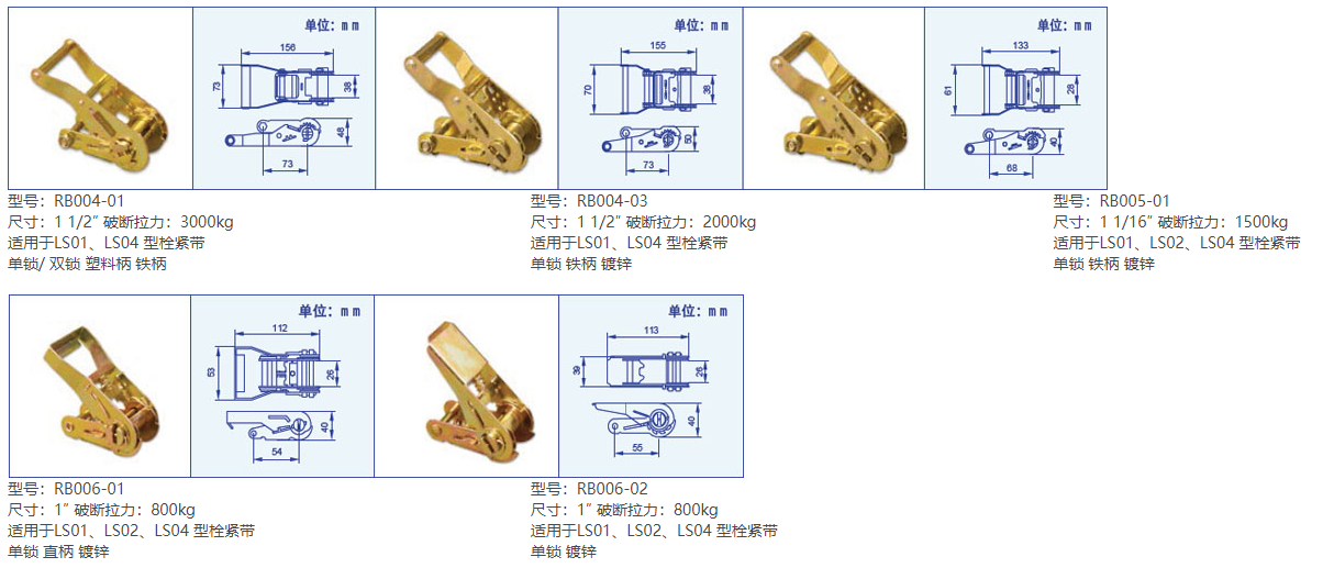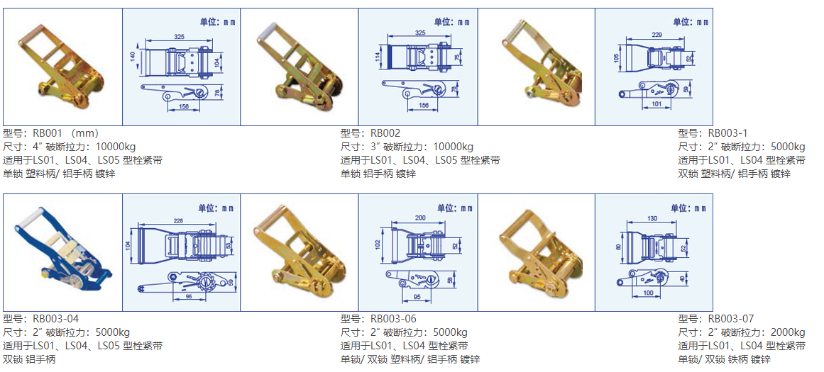 | 產品型號 | 適用尺寸 | 破斷拉力(kg) | 規格大?。╩m) | 表 面 | 適合型號 | 備注 | |||||